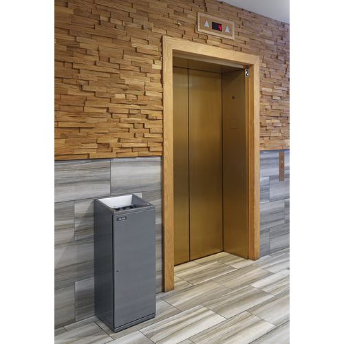 Vékony acél hulladékgyűjtő, a speciális végtelenített hulladékzsákrendszerrel felszerelve, amely elkerüli a felesleges műanyaghulladékot. Mozgatható gumilábakkal felszerelt. Első ajtó biztosítja a zsákok cseréjekor a műszakilag felelős munkavégzés feltételeit. A biológiailag lebomló zsákok cseréje egyszerű és hatékony. Az ajtó belsejében levágja a szemeteszsákot, csomót köt és új zsákot készít. Bref, elegáns, hatékony és fenntartható megoldás a közterületek számára.