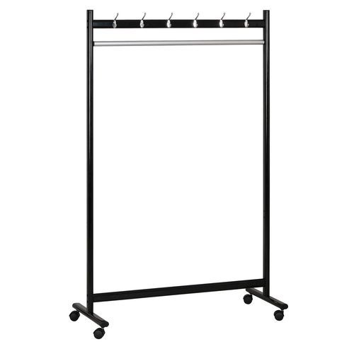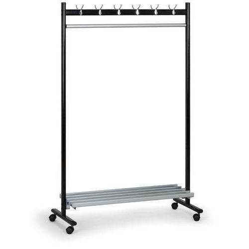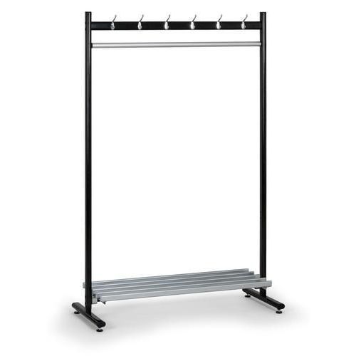 - Fém fogasállvány egyoldalú kivitelben lábakkal és függesztőrúddal vállfákra.