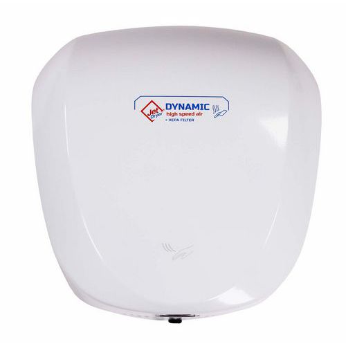 Jet Dryer Dynamic elektromos érintés nélküli kézszárítók tartós kivitelben beépített HEPA szűrővel. Alkalmasak olyan helyekre, ahol sok ember fordul meg. Az egyetlen meleg levegős kézszárító beépített HEPA szűrővel. A szárítókból kiáramló levegő a beépített HEPA szűrőnek köszönhetően mindig maximálisan higiénikus és hibátlan. A HEPA szűrő kiszűri a baktériumok, vírusok és más apró részecskék akár 99,97%-át. Nagyon gyors és csendes szárítás - a levegő 70 m/s sebességgel áramlik ki, a belső szerkezetnek köszönhetően pedig ennek ellenére nagyon csendes. A levegő melegítése teljesen automatikus a környezeti hőmérséklet alapján. Könnyű összeszerelés és karbantartás. Tartós vandálbiztos fehér lakkozott fém vagy rozsdamentes acél kivitelben kapható.