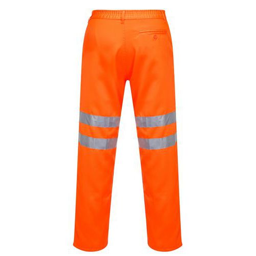 Hagyományos fazonú kevertszálas munkanadrág rendkívül strapabíró alapanyagból vasúti útépítési munkálatokhoz. HiVisTex ipari fényvisszaverő csíkokkal a térdek felett. EN ISO 20471 class 2 és RIS 3279-TOM vasúti szabvány szerint minősítve.
