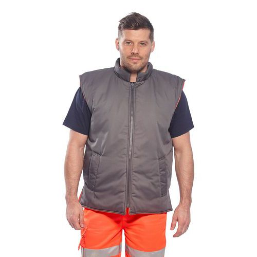 Kifordítható mellény RIS Kiváló minőség és sokoldalúság. A modell meleg béléssel készül két mély oldalzsebbel mind a láthatósági narancs mind a kifordított szürke oldalon. CE minősítés Fényvisszaverő szalag Kifordítható termék UPF 50+ Mély tárolózsebek 4 zseb Teljesen bélelt és párnázott Megfelel az RIS 3279-TOM vasúti szabványnak(csak a narancs szín) Poliészter/Pamut Texpel szövet TEXPEL SOS - Folt-Olaj-Fröccsenés
