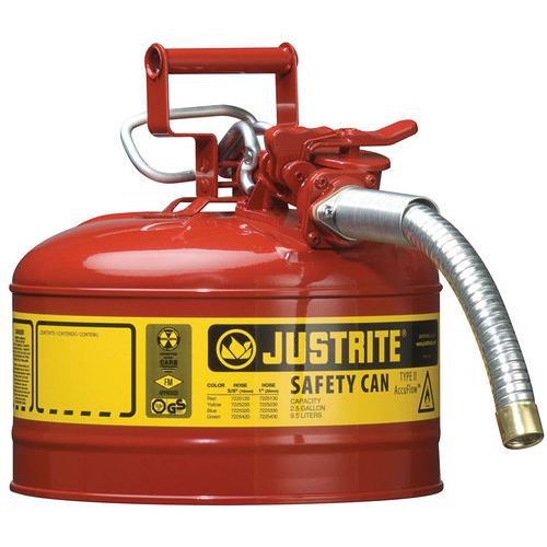 Justrice AccuFlow biztonsági edények gyúlékony anyagokra tömlővel, II. típus