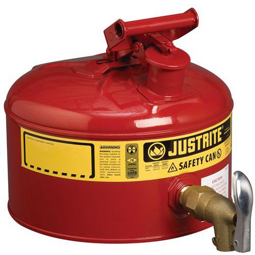 Justrite biztonsági edények gyúlékony folyadékokra leeresztő szeleppel