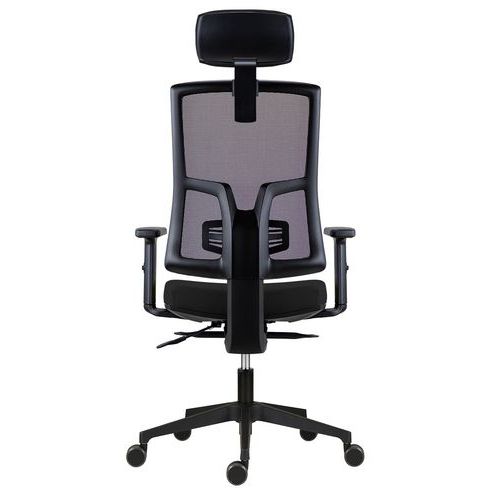 Modern irodai szék hálós háttámlával és kárpitozott ülőfelülettel. Az ülőfelület kiváló minőségű hideghabból készült, amely optimális támasztást biztosít hosszú ülés esetén is. A háttámla önhordó hálóval van bevonva, amely biztosítja a légáteresztő képességet és a kellemes klímát a munkanap során. A székhez tartozik egy magasságban és szögben állítható, kárpitozott fejtámla. A háttámla magassága fel-le mechanizmussal állítható. A magasságban és vízszintesen állítható deréktámasz kényelmet biztosít a felhasználó számára. Szinkronmechanizmus SYN-SL négyszeres rögzítéssel. A ülés mélysége állítható (akár 5,8 cm-rel). A szék minőségi alumínium kereszttartón áll, Ø 60 mm-es kerekekkel puha felületekhez. A szék teherbírása 150 kg. Három színváltozatban kapható.