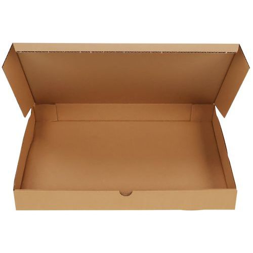 Merev szállítódobozok Havanna színű kraftkartonból. Kifejezetten lapos formátumokhoz igazított konstrukció. Kartonlap típusa : Háromrétegű