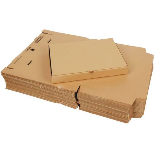 Merev szállítódobozok Havanna színű kraftkartonból. Kifejezetten lapos formátumokhoz igazított konstrukció.