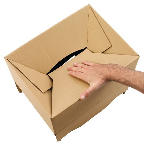 Előre formált test a doboz nagyon gyors összeszereléséhez. Dupla vastagságú alappal. Oldalsó fogantyúkkal felszerelve. Készítse elő dobozait pillanatok alatt Kartonlap típusa : Háromrétegű