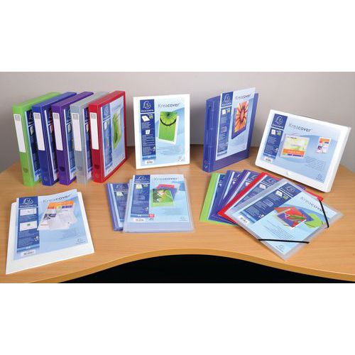 Állítható zseb az elején. Félkemény polipropilénből készült. Sima mappák nagy átlátszósággal.