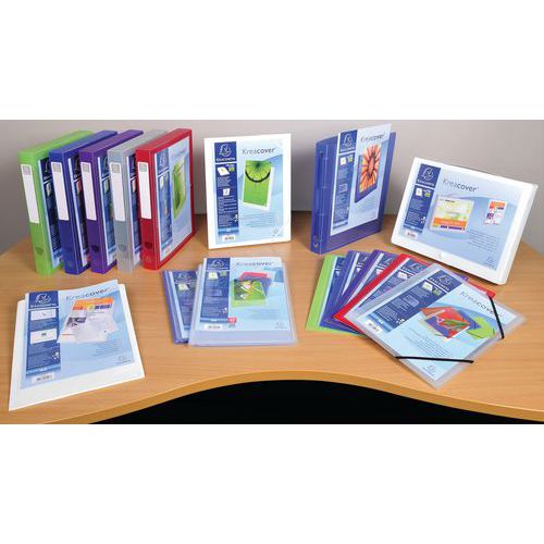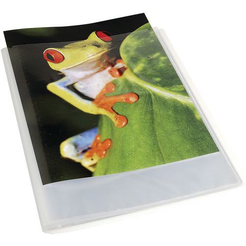Állítható zseb az elején. Félkemény polipropilénből készült. Sima mappák nagy átlátszósággal.