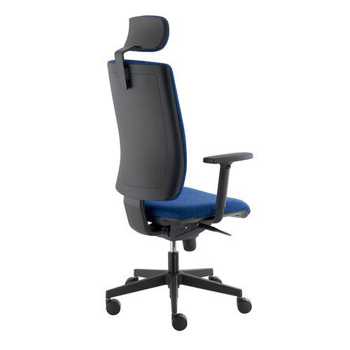 Irodai szék kétféle színváltozatban szinkron mechanikával, állítható háttámlával, valamint magasságban és oldalirányban állítható karfával. Teherbírás 150 kg.