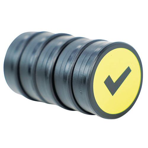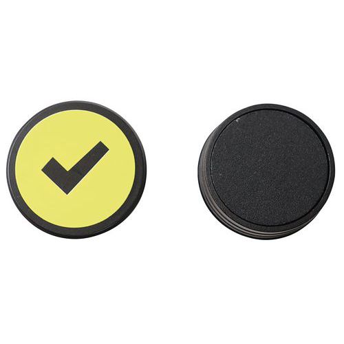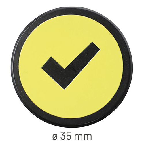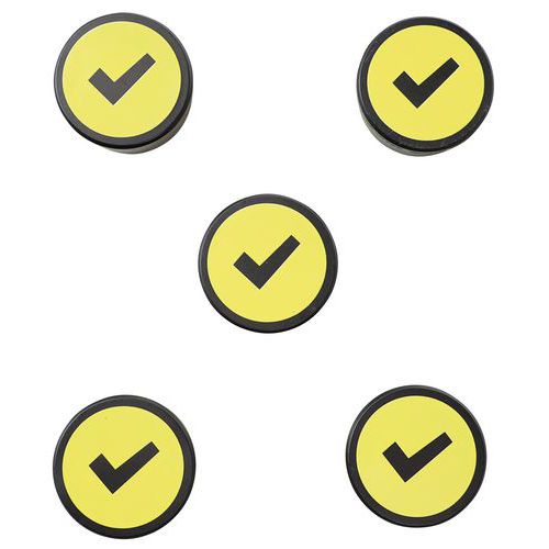 Kerek mágnes horog vagy síp szimbólummal, amely például a helyes megoldást vagy egy elvégzett feladatot mutatja. A merész színek jó láthatóságot biztosítanak. Válasszon vizuális kommunikációs módot