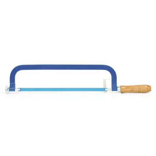 - Vas vágására szolgáló keretes fűrész fa markolattal. A fűrészlap a könnyű csere érdekében anyacsavarok segítségével van rögzítve.