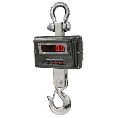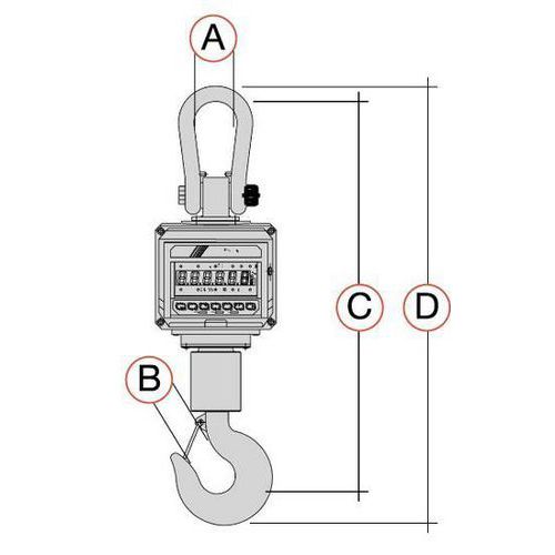 A robusztus darumérleg raktárakban és megszakítás nélküli munkarendű üzemekben történő használatra alkalmas.A készüléktest fémből készült, mely garantálja a nagyfokú ellenállóképességet, az akasztóhorog pedig a mért tárgy kicsúszása elleni nyelvvel van ellátva.A mérleg megvilágított kijelzője nagyobb távolságból is könnyen olvasható.A távirányító alapesetben a mérleg tartozéka.A tápellátás beépített akkumulátor segítségével történik (üzemidő kb. 50 óra, töltési idő kb. 14 óra).