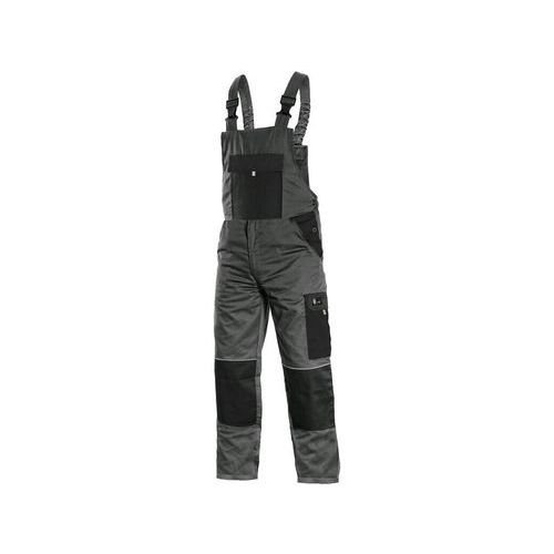 Férfi nadrág vállpánttal, elülső zsebekkel, mérőszalag zsebbel, oldalsó füles zsebbel, hátsó egy zsebbel, derékkal övhurokkal, vállpántos zsebbel. Méret: 46-64 Szabványok: EN ISO 13688 Öltönykollekció: CXS PHOENIX Anyagösszetétel: 65% poliészter, 35% pamut, 190 gsm Szín: szürke-fekete