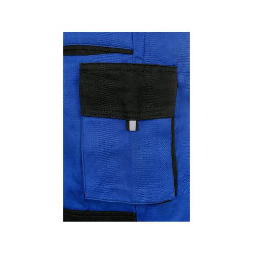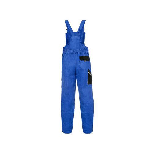 Férfi kezeslábas előke - rövidített változat 170-176 cm magasságra. Mellzseb cipzárral, elasztikus derékrész hátul, elülső zsebek, oldalsó zseb mérőszalaghoz / lehajtható mérőszalaghoz, oldalzseb mobiltelefonnak / pénztárcának, dupla térd, hátsó zseb füllel, Méret: 44-64 Külső anyag: 100% pamut Fényvisszaverő kiegészítők: Igen Termék hossza: Rövid méret 170-176 cm Szín: Kék