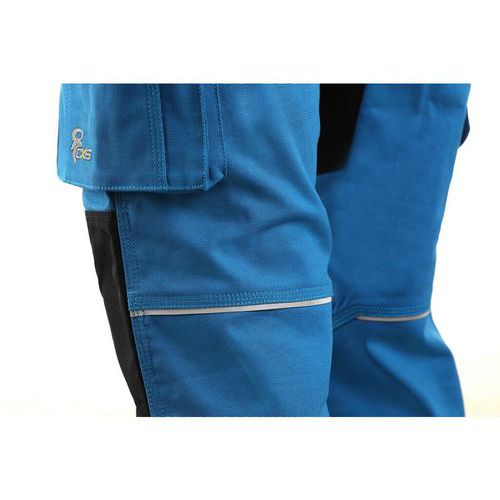 Női vállpántos, sztreccs szövet a szabad mozgásért, füles mellzseb, derék övhurokkal, elülső zsebek cipzáras zsebbel, többfunkciós zsebek mindkét oldalon, 600D poliészter megerősített térd, két hátsó zseb - a 38-58 méretben Fényvisszaverő kiegészítők: Igen