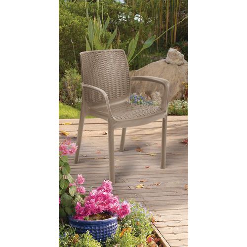 Székek kertbe, teraszra, erkélyre vagy pergola alá. Erős, időjárásálló és UV-álló műanyagból készült. A ratan textúra modern dizájnnal ruházza fel a széket. A karosszék méretei 55 x 58,5 x 83 cm.