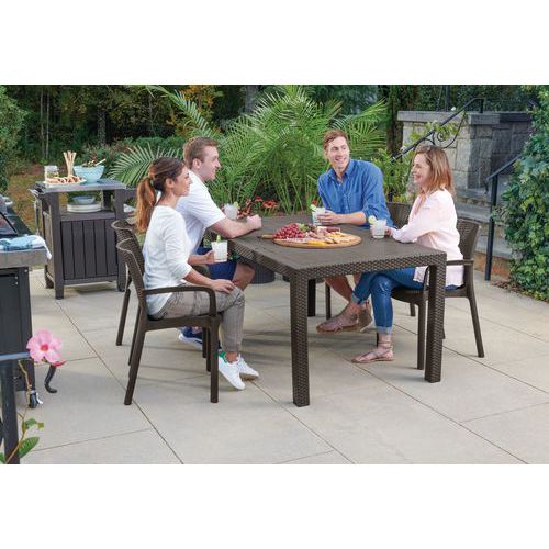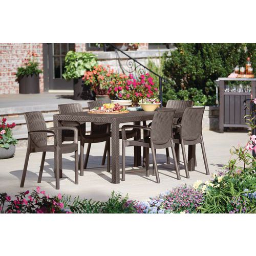 Székek kertbe, teraszra, erkélyre vagy pergola alá. Erős, időjárásálló és UV-álló műanyagból készült. A ratan textúra modern dizájnnal ruházza fel a széket. A karosszék méretei 55 x 58,5 x 83 cm.