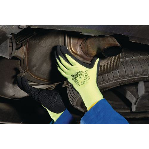Hőálló kesztyű felületkezeléssel és mikropontokkal az optimális szigetelésért. Kiváló kopásállóság. Anatómiai forma és finom szövet a nagy kézügyességért. Kinyélbevonat enyhén olajos környezetben végzett munkákhoz. Varrat nélküli kötött támaszték a nagyobb kényelem érdekében. Az alábbi munkákhoz használható: kerámiák, műanyagok és kompozit anyagok. Kompozit anyagok kezelése hőkezelés után. Kerámiaformák kezelése. Forró acél kezelése hegesztés után. Kezelése forrón csövek. Építés (fűtő/vízvezeték/csatornázás). Csővezetékek karbantartása.