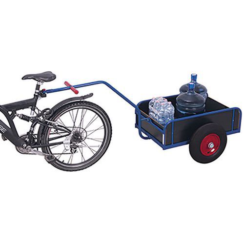 Kézzel mozgatható, kétkerekű kocsi kerékpárra rögzítéshez. Gömbfejjel és műanyag konzollal szállítjuk a kerékcsőhöz való csatlakoztatáshoz. 26 - 31 mm átmérőjű csövekhez. A kocsi maximális teherbírása kerekenként 40 kg. Ragasztott, vízálló rétegelt lemezből készült raktér és oldalpanelek csúszásgátló felülettel. 220 mm magas oldalsó korlátok. Felfújható gumiabroncsok acél felnin, golyóscsapágyakkal. Vázfelület-kezelés RAL skála szerinti porfestékkel. Ütés- és karcálló.