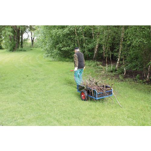 Kétkerekű kocsi húzófogantyúval, tömör oldalakkal, 400 kg-ig, felfújható kerekekkel, kék, 190 x 81 x 86 cm Kétkerekű kocsi húzófogantyúval, tömör oldalakkal, 400 kg-ig, felfújható kerekekkel, kék, 190 x 81 x 86 cm
