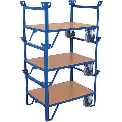 Szállítóplatform két fix kerékkel és négy fém lábbal. Felépítmény támasztósarkokkal a platformok egymásra rakásához, rakásmagasság 550 mm. MDF lapból készült ágy. Szürke, foltmentes, hőre lágyuló gumi kerekek műanyag felnin, golyóscsapágyakkal. Vonórúd-csatlakozás golyóshüvellyel. Vázfelület-kezelés RAL skála szerinti porfestékkel. Ütés- és karcálló. CE : nincs Teherbírás (kg) : 500 kg