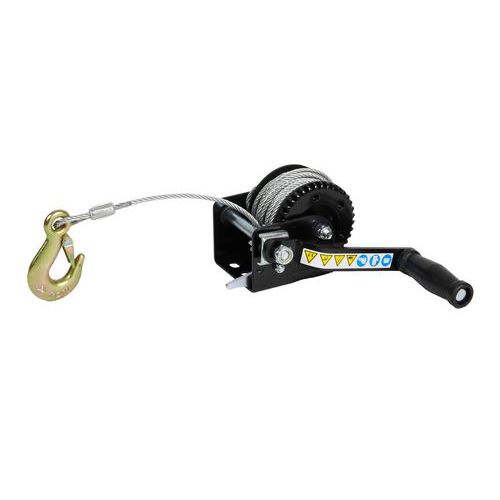 - Huzalos csörlő 10 m-es hosszú acélhuzallal és legfeljebb 360 kg teherbírással. A csörlő kizárólag a terhek vízszintes húzására használható. Nem használható emberekkel. Fogantyú fékkel.