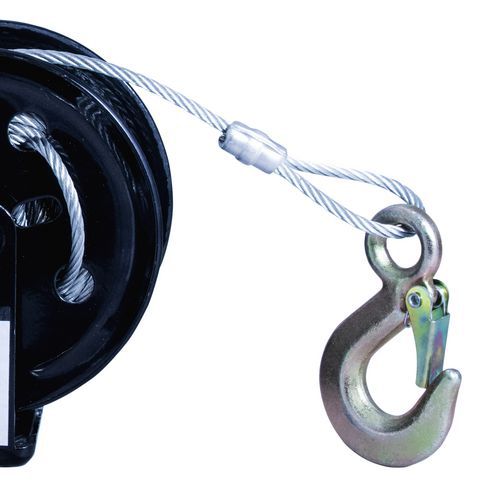 - Huzalos csörlő 20 m-es hosszú acélhuzallal és legfeljebb 720 kg teherbírással. A csörlő kizárólag a terhek vízszintes húzására használható. Nem használható emberekkel. Fogantyú fékkel.