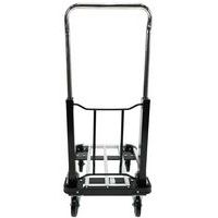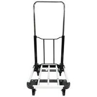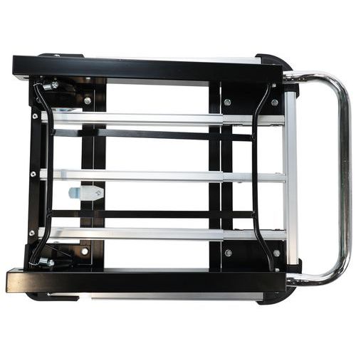 Alumínium kézikocsi teleszkópos fogantyúval. A teleszkópos fogantyú két pozícióba állítható. A plató 4 sarkán PVC ütközésvédelem található. A mozgatást 100 mm átmérőjű poliamid kerekek biztosítják, melyekből kettő fix és kettő fékezhető, önbeálló. Teherbírás (kg) : 150 kg