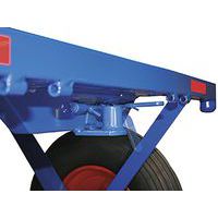 Acél kézikocsi tömör oldalakkal, oldalmagasság 210 mm. Vonórúd puha markolattal. Fényvisszaverő elemek acélszerkezeten. Automatikus első rögzítőfék és automatikus lágy visszatérés nyugalmi helyzetbe. A raktér és az oldalpanelek vízálló, ragasztott rétegelt lemezből készültek, csúszásgátló felülettel. Felfújható vagy tömör gumi kerekek műanyag felnin, golyóscsapágyakkal. Vázfelület-kezelés RAL skála szerinti porfestékkel. Ütés- és karcálló. Teherbírás (kg) : 1250 kg CE : nincs