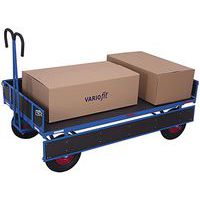 Acél kézikocsi tömör oldalakkal, oldalmagasság 210 mm. Vonórúd puha markolattal. Fényvisszaverő elemek acélszerkezeten. Automatikus első rögzítőfék és automatikus lágy visszatérés nyugalmi helyzetbe. A raktér és az oldalpanelek vízálló, ragasztott rétegelt lemezből készültek, csúszásgátló felülettel. Felfújható vagy tömör gumi kerekek műanyag felnin, golyóscsapágyakkal. Vázfelület-kezelés RAL skála szerinti porfestékkel. Ütés- és karcálló. CE : nincs Teherbírás (kg) : 1250 kg