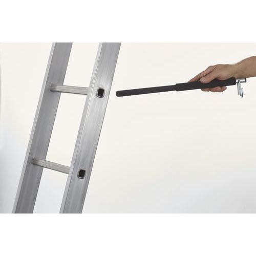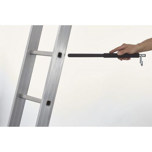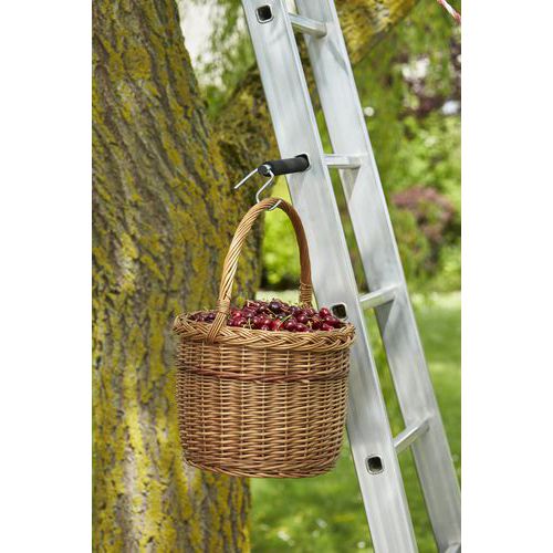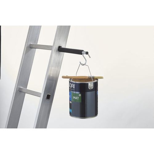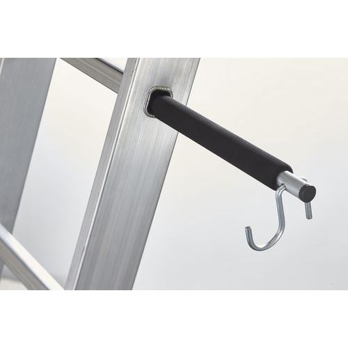 További acél kampó a létrán vödrök, kosarak és egyéb tartozékok felakasztásához. A horog egy 16 mm átmérőjű acélcsőhöz van rögzítve, amelyet a létrafokba helyeznek. Az acélcső fekete PE habbal van bevonva. Maximális terhelhetőség 20 kg.