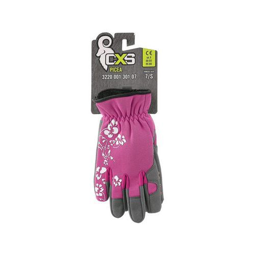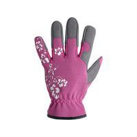 Kesztyű mintás a hátán. Felhasználási javaslat: kert, logisztika, hobbi. Méret: 7, 8 Piktogramok: 1 / 2131, 9, 10 Szabványok: EN 388, EN 420 Anyagösszetétel: tenyér - viszkóz (szintetikus bőr), hátoldal - sztreccs elasztán