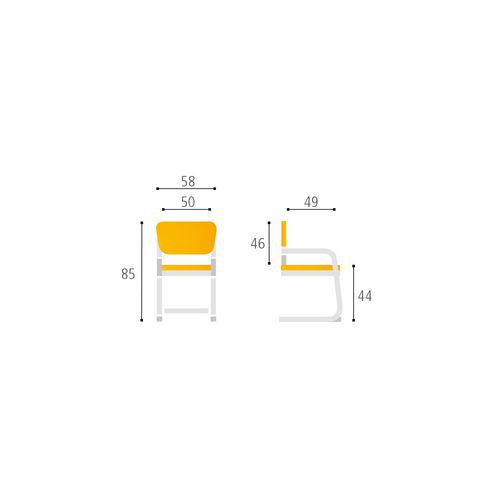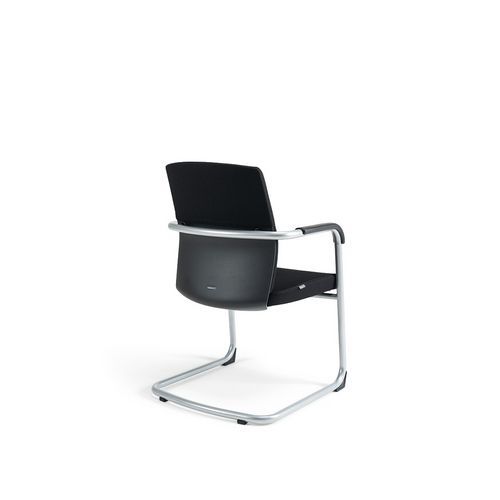 Konferencia szövet székek fémszerkezettel és integrált könyöktámasszal. A hideghabból készült ülőlap magas élettartammal rendelkezik. Műanyag csúszótalpak a szék szerkezet és a padlóburkolatok védelmére. Teherbírása 120 kg.