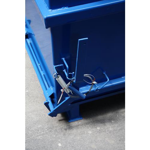 Billenő fenekű konténerek, használhatók különböző anyagok és hulladéktípusok tárolására és mozgatására. A fenék zsineg segítségével közvetlenül a targoncavezető helyéről biztosítható ki.