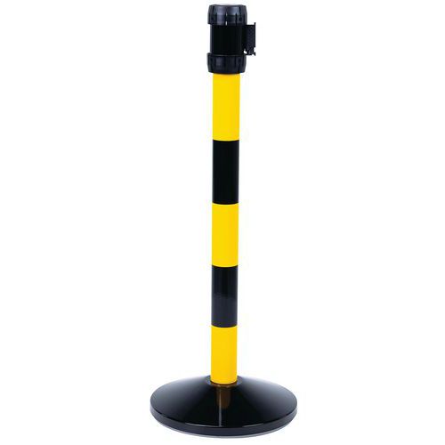 Acél kordonoszlopok poliészter szalaggal térelválasztásra és a személyek irányítására. Ellenálló ABS szalagkazetta öncsévélő lassító mechanikával. A szalag akár 17 különböző pozícióban rögzíthető bármilyen szögben. Az oszlop felületkezelése porszórásos lakkozás. Stabil acél talapzat.