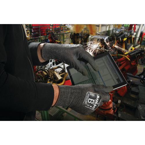 Varrat nélküli kötött kesztyű a maximális kényelem, a jó kézügyesség és a rugalmasság érdekében. A vágás elleni védelem szintje könnyen meghatározható a kesztyű hátoldalán található jelölésnek köszönhetően. Nem tartalmaz szilikont, és segít megelőzni a nyomokat és hibákat a fémlemezen és az üvegen a festés előtt. Bőrgyógyászatilag jóváhagyott.