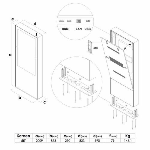Kültéri digitális totem Standard Samsung 55 monitorral, fekete, időjárásálló