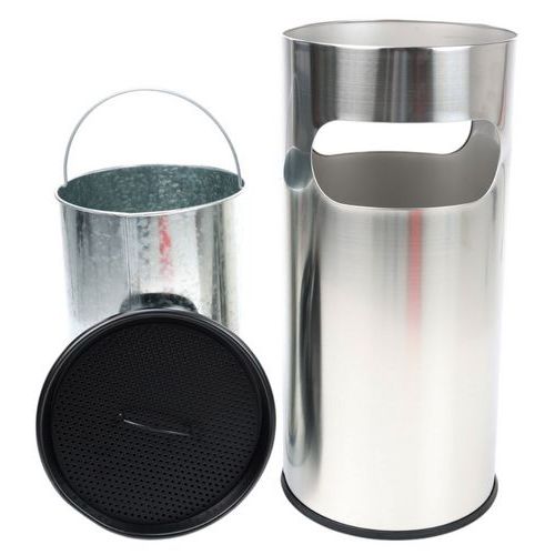 Kültéri fém szemétkosár Manutan Expert Stream hamutartóval, űrtartalma 50 l, rozsdamentes acél Kültéri fém szemétkosár Manutan Expert Stream hamutartóval, űrtartalma 50 l, rozsdamentes acél