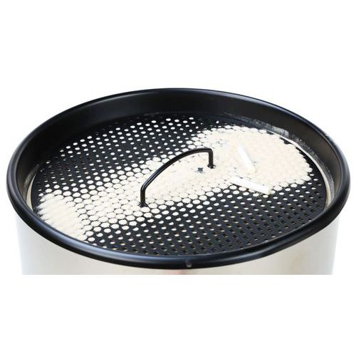 Tűzálló henger alakú kültéri hamutartós szemétkosár. Fém betét füllel a szemétkosár könnyű ürítésére. Oldalsó szemétbedobó nyílás. Alkalmas kültéri felfüggesztett elhelyezésre.