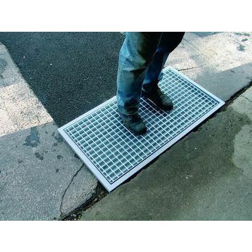 A fém lábtörlők kerettel és szennyeződésgyűjtő káddal kiválóan alkalmasak a rendkívül gyakori használatú, szennyezett helyekre. A horganyzott acéllemez szerkezet rendkívül ellenálló az időjárási viszontagságokkal szemben. A rostélyok, keretek és kádak külön rendelhetők. méretek - ho x szé: 108 x 58 cm magassága: 3 cm anyaga: horganyzott acél színe: ezüst használata: kültéri csúszásgátló: igen tömege: 28,55 kg csomagolás: 1 db magasnyomású mosóval mosható, nedves környezetre tervezve Lábtörlő vastagsága (mm) : 30