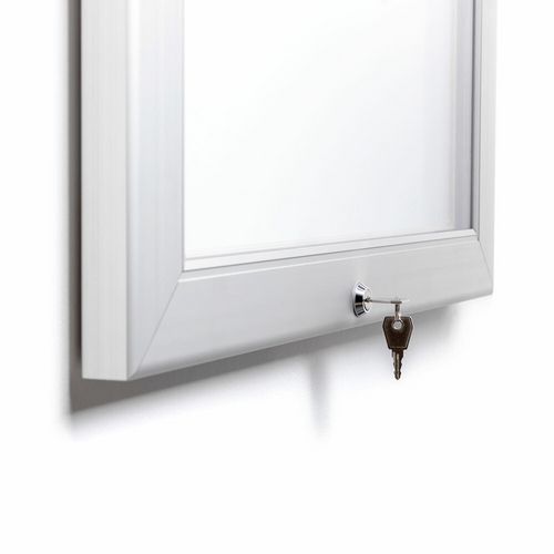 Az SCA zárható vitrin megbízható megoldást kínál fedett kültéri terekbe. A tartós PETG előlap nagyfokú átlátszóságot és szilárdságot biztosít. A mágneses hátlap megkönnyíti a poszterek cseréjét. Ideális iskolákba, irodákba és középületekbe.