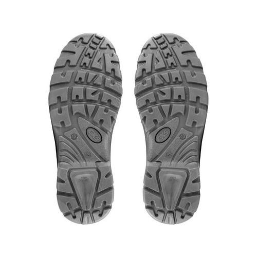 Biztonsági csizma, bőr, műanyag orrvédővel és Kevlar talpbetéttel, fényvisszaverő kiegészítőkkel. Anyaga: 1,6-1,8 mm hasított nubuk bőr felsőrész (egyrészes), külső TPU sarokvédelem, fém alkatrészek nélkül, légáteresztő kopásálló szövet bélés, PU-PU olajálló, antisztatikus, csúszásmentes talp. Méret: 37-48 Védelem: megerősített orrral és talppal Védettségi szint: S3