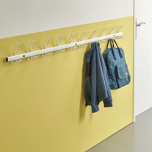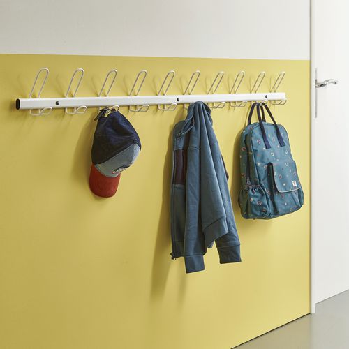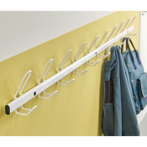 Kabáttartó 10 akasztóval. Acél szerkezet epoxi porszórt bevonattal. A horgok közötti távolság 14,50 cm.