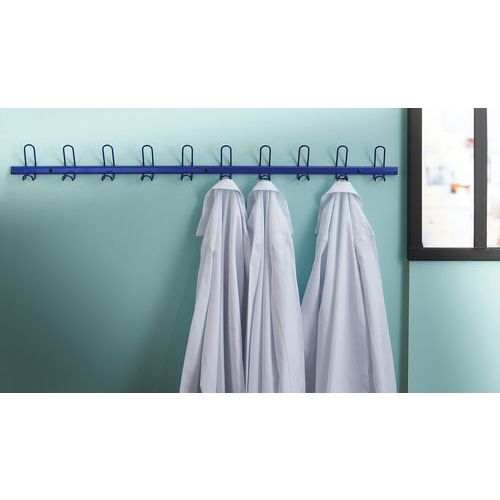 Kabáttartó 10 akasztóval. Acél szerkezet epoxi porszórt bevonattal. A horgok közötti távolság 14,50 cm.
