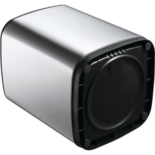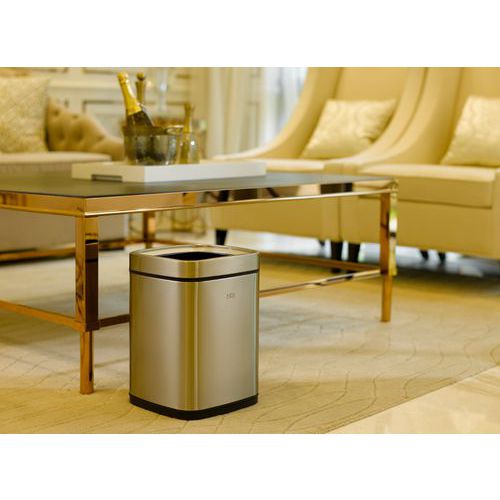 Négyzet alakú kuka Mat rozsdamentes acélból, felső nyílással. Béléssel és ujjlenyomat-mentesítő bevonattal ellátva. A bélés könnyen cserélhető a kuka felső részének eltávolításával. Az alján lévő gumialkalmazások védik a padlót és a helyén tartják a szemetesedényt.