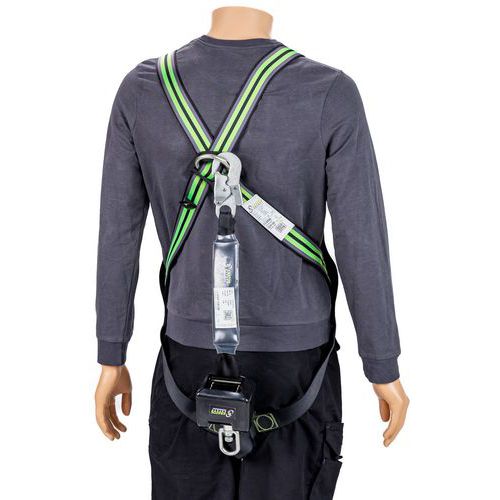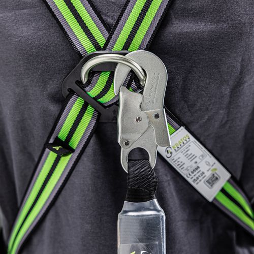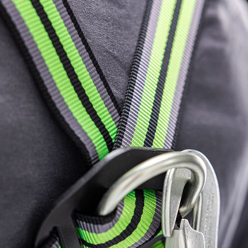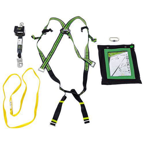 Kifejezetten ipari karbantartáshoz tervezett készlet hevederrel, karabinerrel, horgonyszíjjal és visszahúzható hevederrögzítő rendszerrel. Komplett megoldás alacsony magasságú munkákhoz.