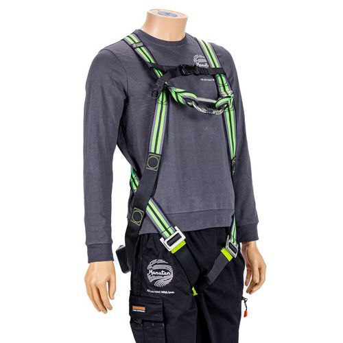A készlet 1 hevedert tartalmaz, 1 db acél csavaros karabiner, 1 x 1,2 m-es horgonyszíj, 1 x 2,5 m-es visszahúzható zuhanásgátló rendszer hevederrel, 1 hordtáska.