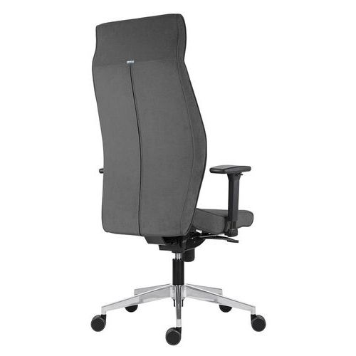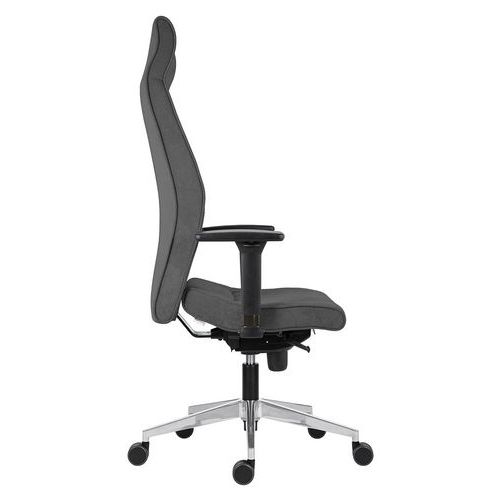 LEI teljesen kárpitozott irodai szék szinkronmechanikával. A szék egyműszakos munkavégzésre szolgál. Állítható magasságú és dőlésszögű ülőlappal. 5 rögzítési pozícióval és automatikusan beállított háttámla billentési ellentartással. Gázlifttel, polírozott alumínium lábkereszttel és puha felületekre kialakított görgőkkel. Alaptartozékként állítható magasságú karfákkal 3 funkcionális beállítással és puha tapintású felülettel