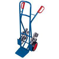 Lépcsőkocsi ötküllős csillagkerekekkel, szürke foltmentes, hőre lágyuló gumiabroncsokból. Acél szerkezet 300 x 285 mm méretű lapáttal. Két műanyag biztonsági fogantyú. A kerekek gumiabroncsok acélfelnire vagy tömörgumi kerekek műanyag felnire, precíziós golyóscsapágyakkal és műanyag kerékburkolattal. Keret felületkezelés porfestékkel RAL skála szerint. Ütés- és karcálló. Teherbírás (kg) : 200 kg